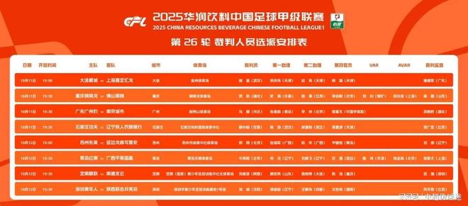 中超第26轮裁判选拔:两场重要比赛使用VAR,中超